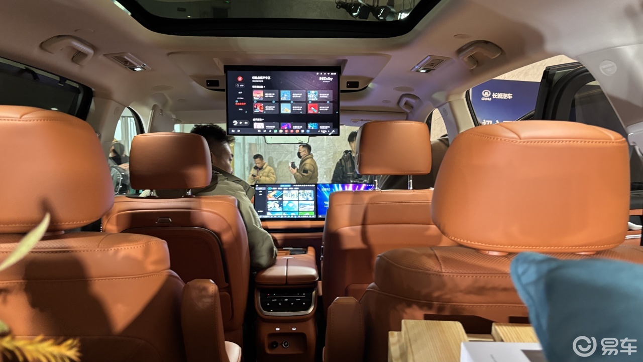 车内配置也没有掉队,冰箱、彩电、大沙发、后备箱220V接口一应俱全,可以说9系能给的它也能给。前排屏幕可以同步控制后排吸顶屏的设计值得肯定,不过也有可以提升的地方,比如冰箱只支持上方双开门,如果可以加侧面开门方式,后排乘客使用起来会更方便。