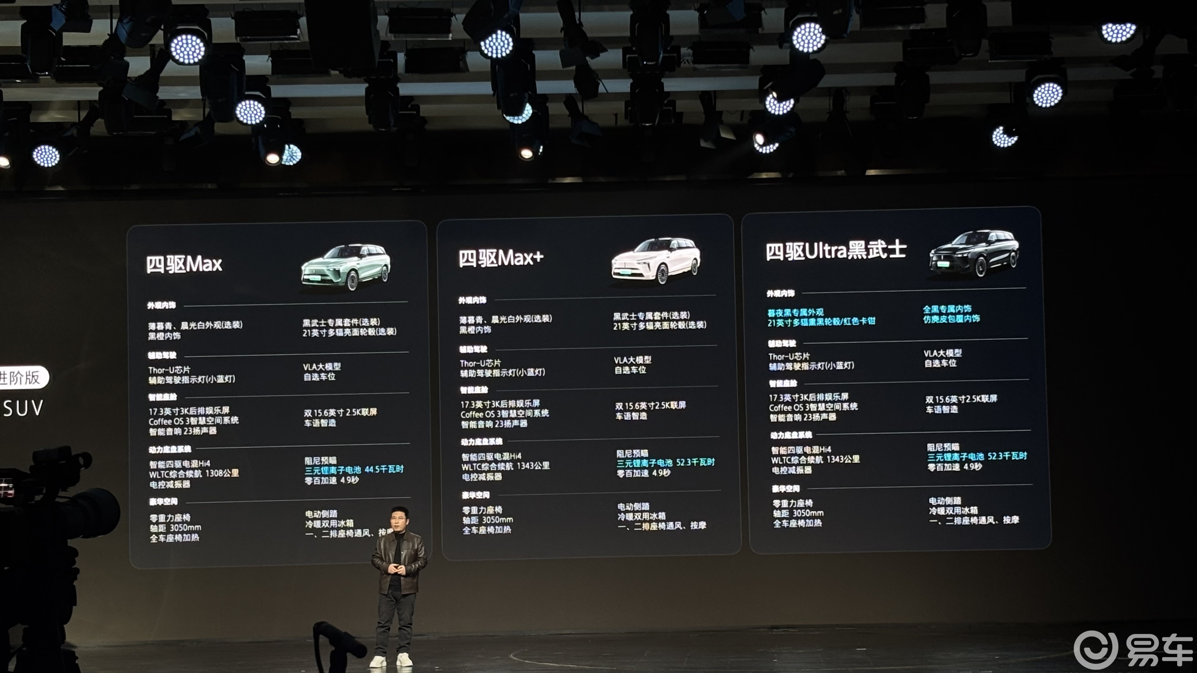 如此对比便清晰许多:入门版本在功能性配置方面已经没有短板,44.5kWh的也足以满足日常使用。值得一提的是,中低配两个版本都支持选装黑武士套件、仿麂皮内饰,并享有3000元的选装基金。所以综合看下来,四驱Max版的可购买度更高。