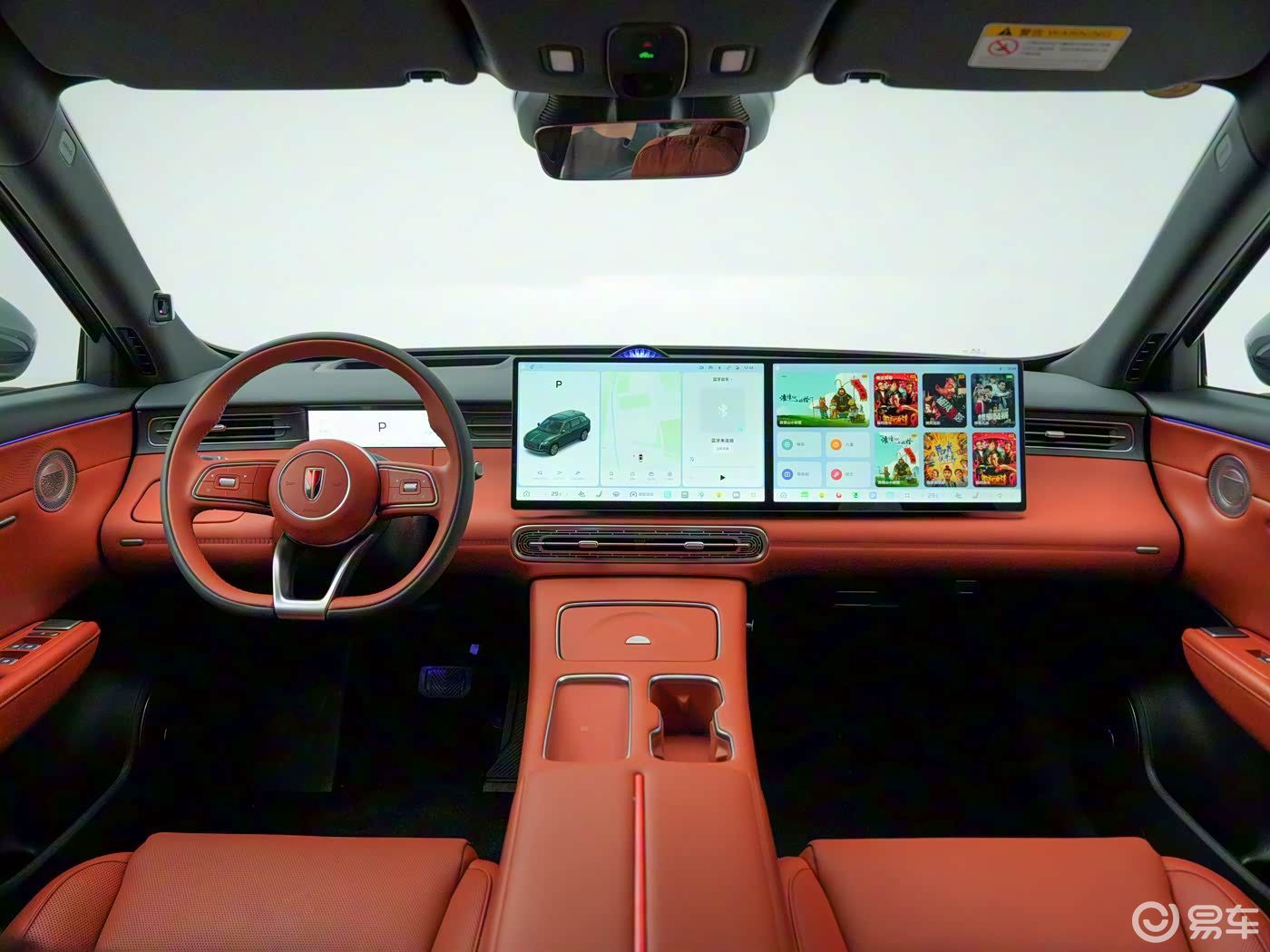 整个内饰也设计的非常简洁,采用了双色的撞色设计,看起来特别亮眼。整个中控台设计的很简约,搭载了两块15.6英寸的中控+副驾双连屏,再加上驾驶台前方的液晶仪表盘,可谓是科技感十足。整个中央扶手台的分区一目了然,采用了换挡设计,多功能方向盘的造型也很简洁。在配置方面,该车搭载的是高通骁龙8295P芯片,可以保证车机拥有很好的流畅度,并且还提供有16扬声器,前排座椅通风、加热、按摩,智能冷暖双用冰箱,感应后尾门,主动降噪,领航辅助,车道巡航,车载香氛等舒适性功能,配置表现也是非常不错。