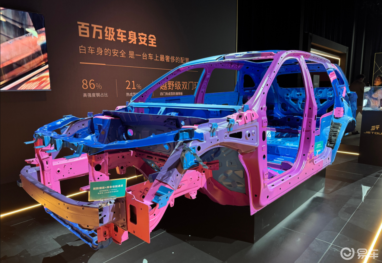 安全这块,捷途直接把行业安全上限又拉高。X70L车身高强度钢占比86%,扭转刚度23500 N·m/deg,这个参数放在任何同价位车型里都够硬。加上母婴级0甲醛水性皮革、整车终身质保,把安全做到用车全周期,让消费者没有后顾之忧。