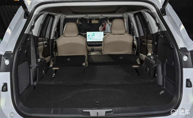 外观基本就是原地踏步,车头黑色大嘴格栅配贯穿镀铬条还是老样子。新增一个赛博金配色,其他墨晶黑铂金珍珠白宝石蓝欧泊银该有的都有。车尾细长尾灯加银色装饰板,混动版右下角挂个HEV标表明身份。长宽高4965/1930/1750毫米,轴距2850毫米,跟2024款一个模子刻出来的,5座7座随便挑。