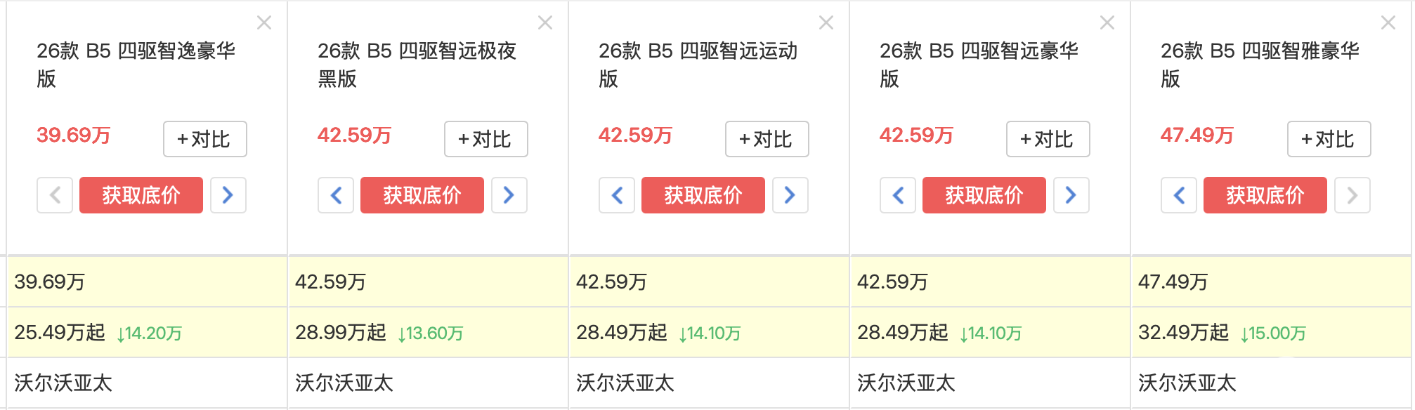 当前两款车型现优惠力度都不小,奥迪Q5L 26款刚发布,指导价在34.98万起,结合老款的优惠力度,估计售价会比指导价低10万左右。沃尔沃全新XC60限时参考尊享价为26.49万元起。