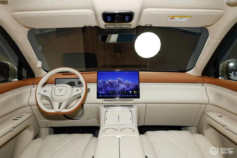 内饰方面,岚图泰山采用2+2+2式6座布局,提供米棕、棕黑和红黑三种内饰配色。配置包括悬浮式液晶仪表、中控屏、32扬声器音响、第二排多功能触控屏、后排独立空调、电动遮阳帘、吸顶屏、冷暖箱等。