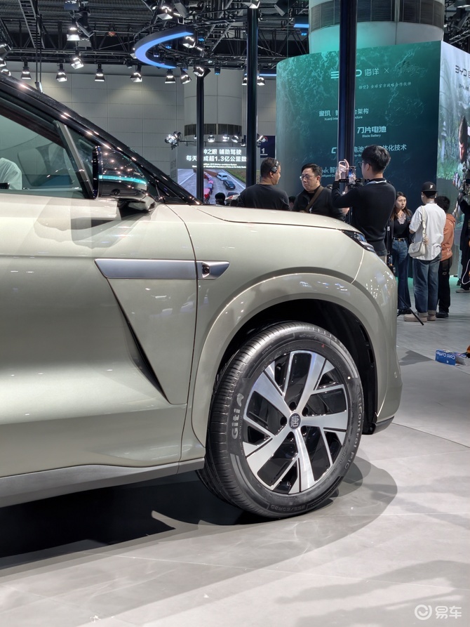 说一下感受,现场灯光的照射下,比亚迪汉L的橄榄绿有一种很特别的质感,