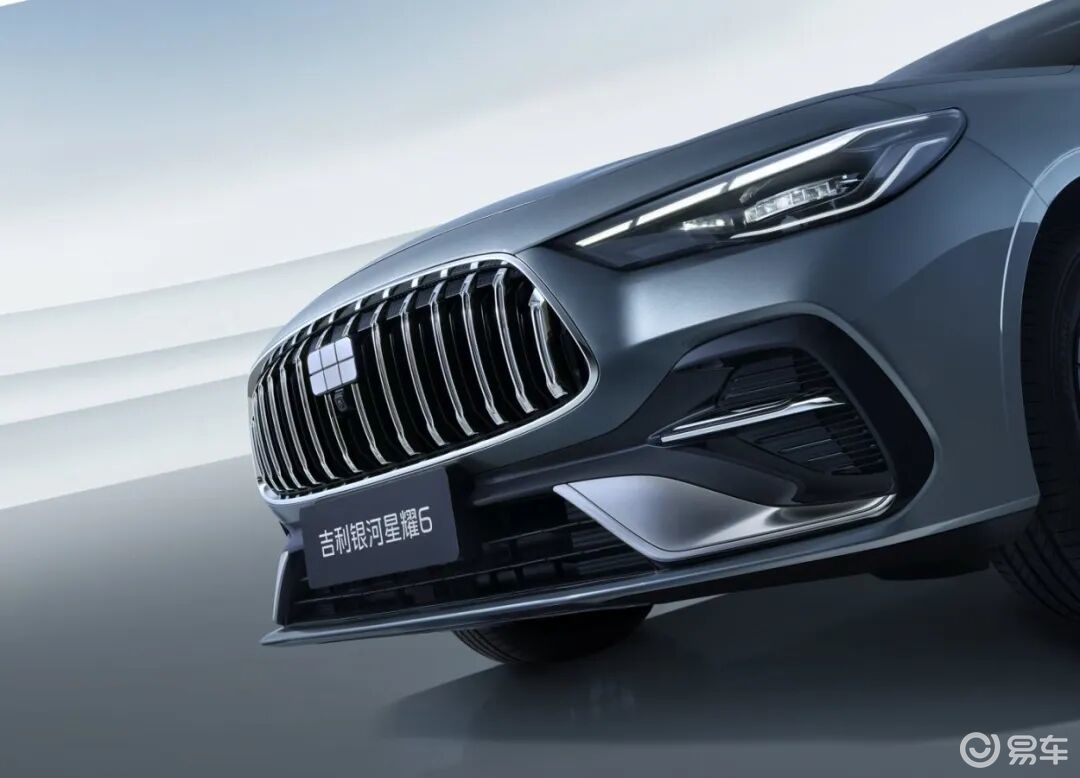 外观上,采用“涟漪美学”的设计语言,外凸设计的梯形前格栅,与奔驰神似,细节上也能看到银河家族化的设计风格,内部采用直瀑式镀铬饰条装饰。细长设计的前大灯组,内部配有间断式设计日行灯,前大灯是远近光一体式设计,远光灯照射距离176m。外观颜色上,新车提供沁釉蓝、丝锦银、脂玉白、曜变黑、砚染灰共五款。