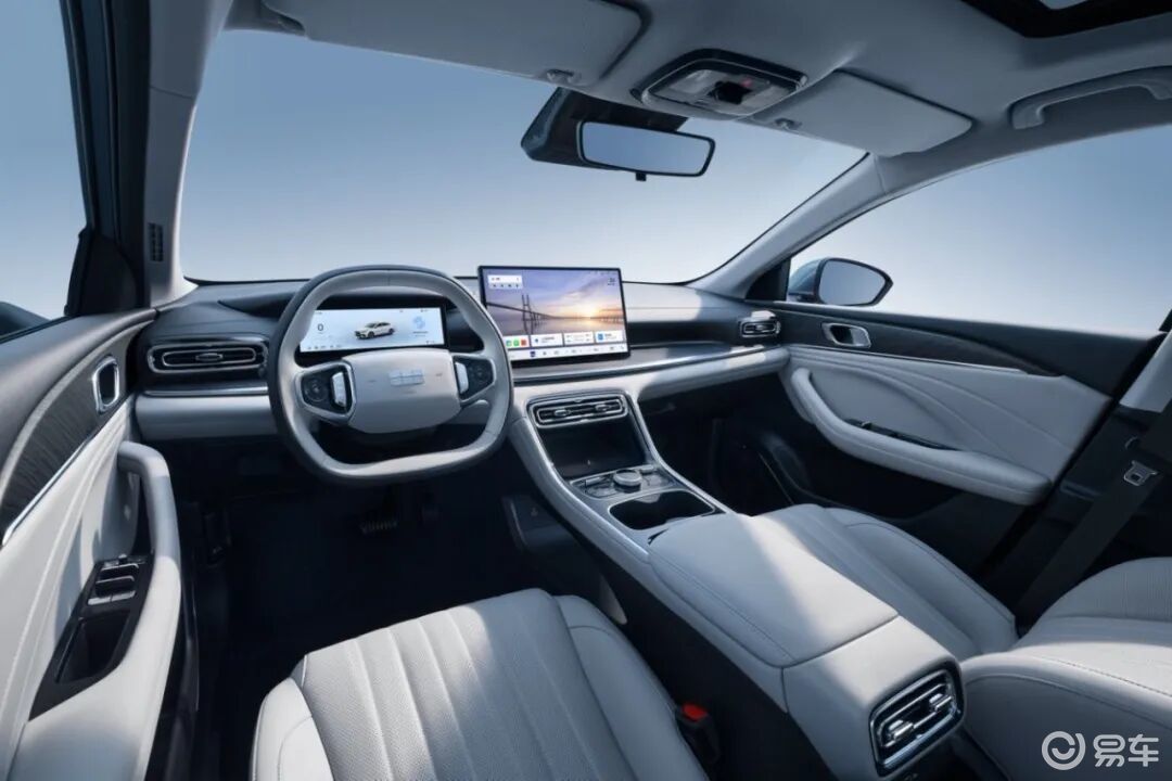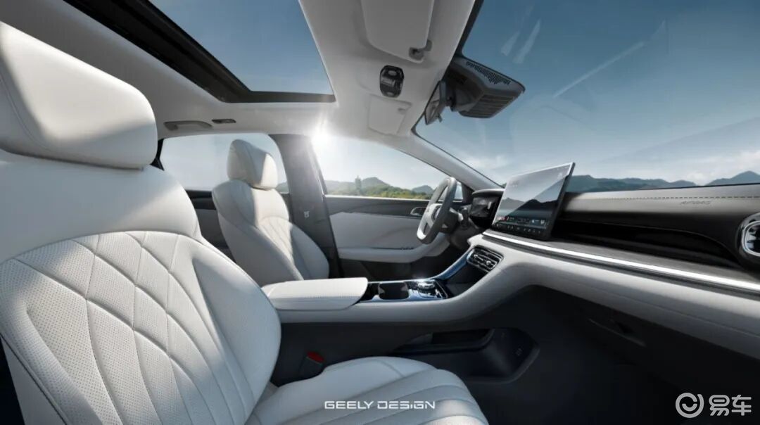 内饰方面,新车采用吉利银河新一代家族式座舱设计,中控台配备10.2英寸嵌入式液晶仪表盘、14.6英寸悬浮式中控屏幕、双辐平底方向盘、怀挡式换挡杆,内置全新银河Flyme Auto智能座舱系统、AI大模型助⼿、吉利自研7纳米车规级芯片,内饰配色上,搭配澄湖映雪白、苏堤暖棕、烟雨墨黛三款内饰配色。