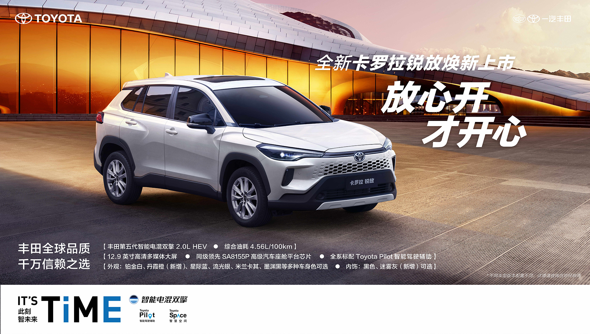 在中国,卡罗拉锐放自2022年上市以来,已赢得近60万用户青睐。全新卡罗拉锐放延续了卡罗拉品牌59年经典传承与全球超5000万用户的信赖,融合丰田全球QDR(高品质、高耐久性、高可靠性)标准,打造出兼具经济性与舒适性的家用SUV。同时,新车依托丰田RCE体制,由更懂中国用户的本地研发团队主导焕新,实现从外观内饰到智能科技的全面进化。
