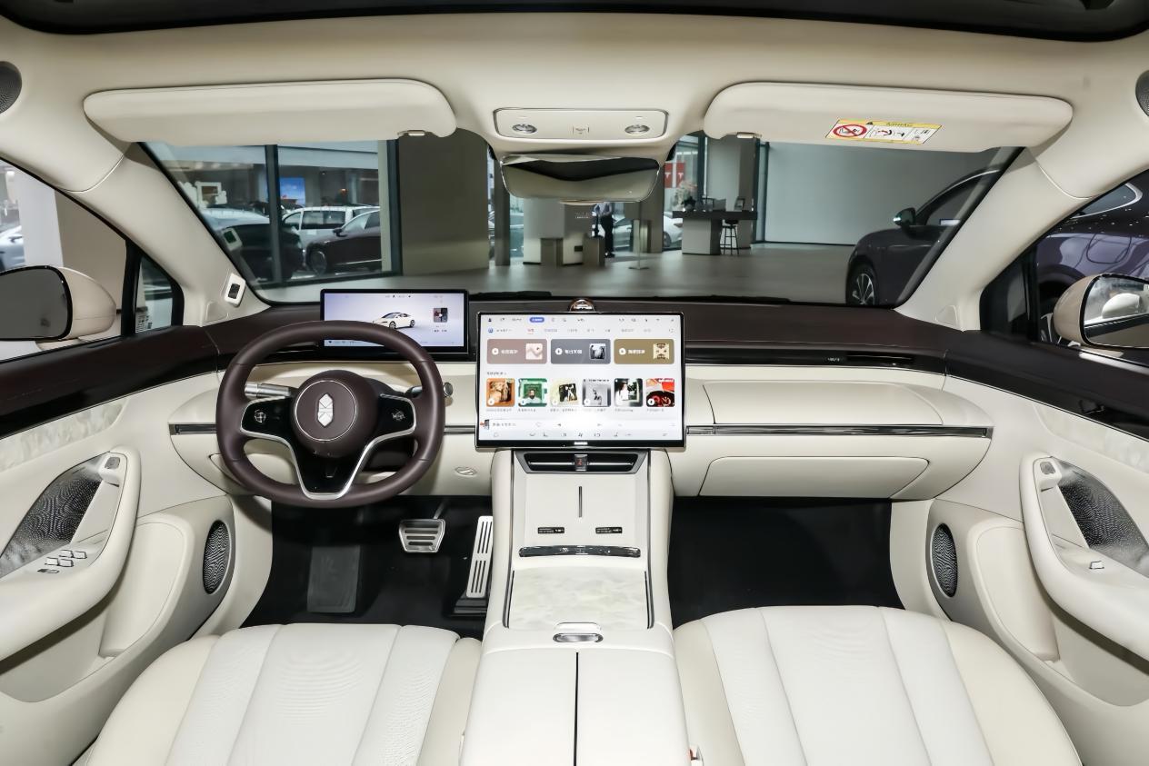 内饰上,采用游艇式环抱座舱设计,配备12.3英寸全液晶仪表和16.1英寸3K中控屏,内置鸿蒙系统支持多屏联动。副仪表台处保留双槽手机无线充电面板。