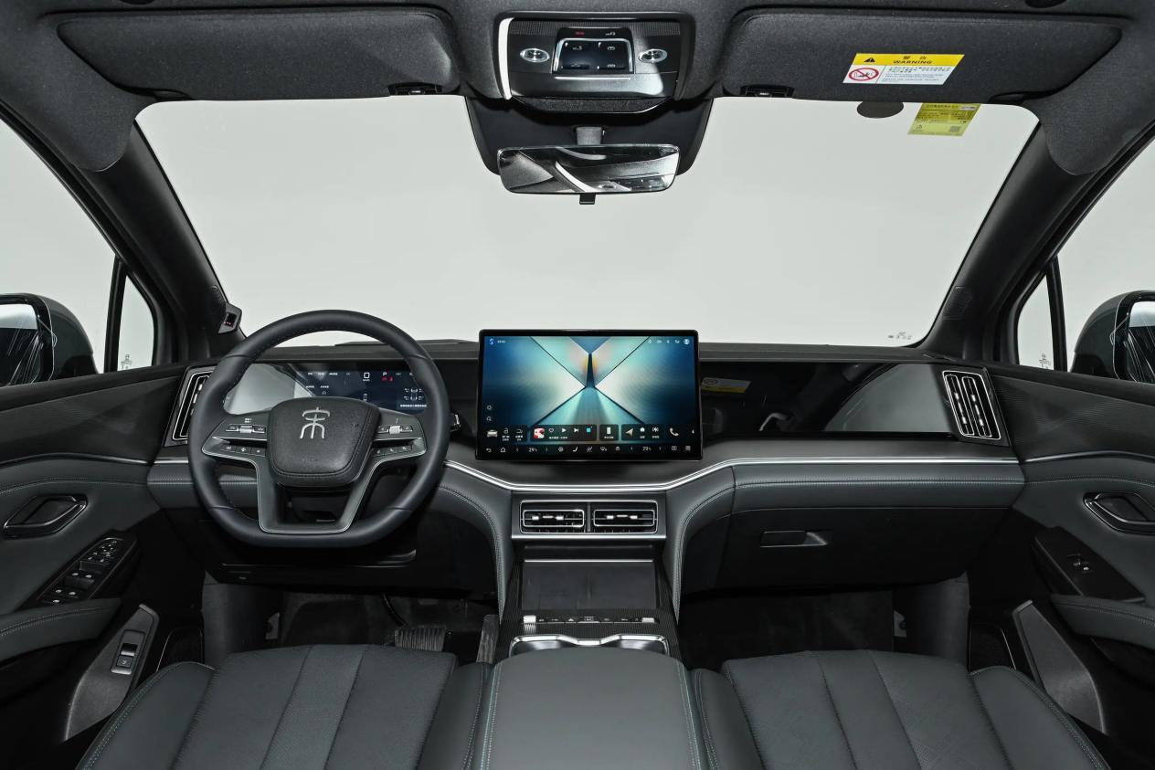 宋L DM-i身上的运动感更强一些,大嘴中网看起来很有冲击感,气场很强。它的座舱布局就和海狮06 DM-i差不多了,但它的中控台更舒展大气,整体质感我认为更好一些。