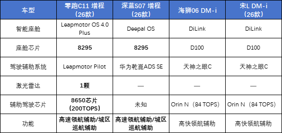 因此从硬件和场景覆盖来看,深蓝S07和零跑C11实力显然更强,相对比亚迪阵营的2位选手具有优势。而总体来看,零跑C11的激光雷达则是在硬件层面表现更好,所以智能化这一环它算是胜者。