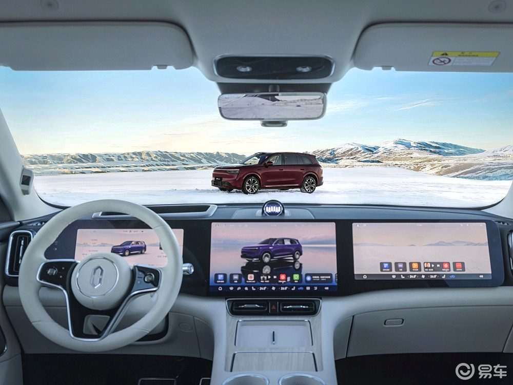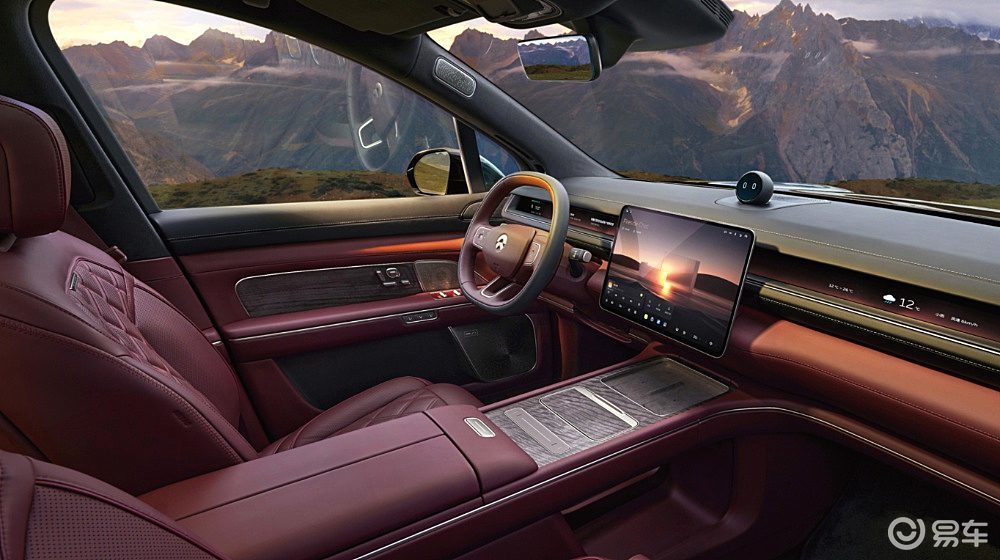 智能座舱领域,蔚来ES8搭载了最新的SkyOS·天枢操作系统,匹配了高通骁龙8295P旗舰芯片,配备15.6英寸的AMOLED中控悬浮屏、10.2英寸HDR数字仪表以及后排的8英寸中央控制屏和21.4英寸的折叠屏幕,共同构成了多屏交互系统。用户可通过精准的语音控制,可以调动车内三千多项功能。