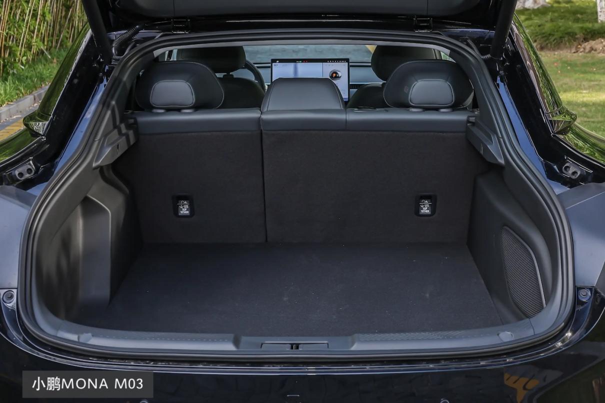 小鹏M03的电动掀背尾门之下,还有600L的后备厢超大容积,这都相当于一台紧凑型SUV了,既能放得下三四人的行李箱,也能满足露营等户外装备的存放。