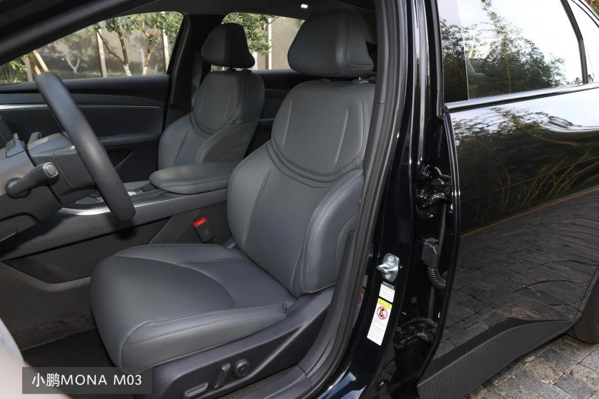 当然,舒适跟底盘、跟NVH也有很大关系。小鹏M03的前麦弗逊+后扭力梁式悬架组合,说白了就是讲究铺装路上的松弛舒适,不说多灵活,但只要不是烂路那还是足够舒适的。而且这车NVH做得很不错,毕竟是拿过认证的,高速上开着音乐就不会感受到明显风噪。