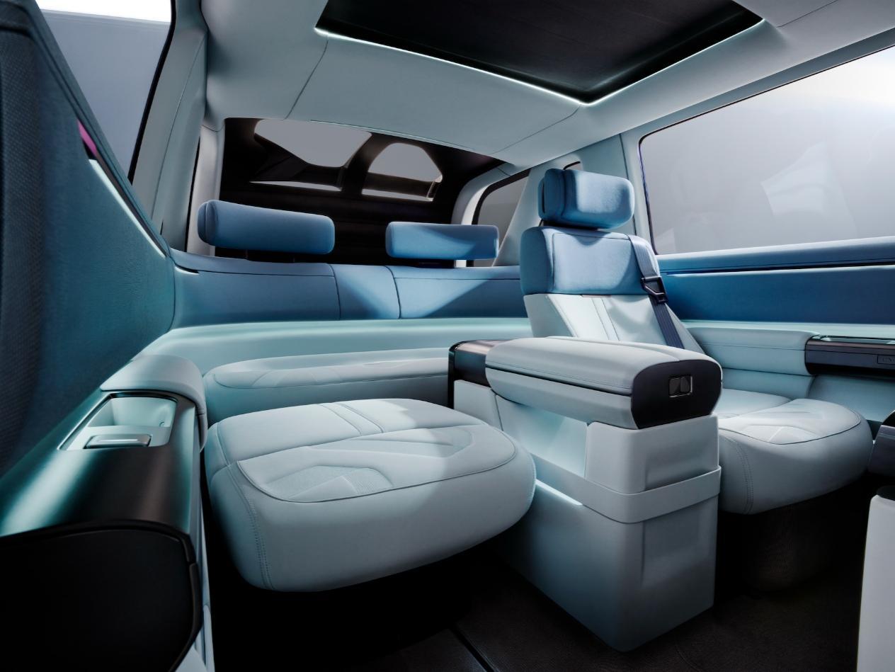 Concept 97承袭经典的“指挥官式”设计精髓,保留掌控全局的驾驶视野。创新布局的第三排环抱式沙发与可升降TArga半敞篷尾窗,让汽车成为生活的延伸。创新织物面料,于细节处诠释豪华科技。