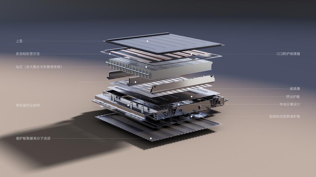 在三电领域,FREELANDER神行者中国首发产品将全系标配800V高压增程平台,并与宁德时代联合开发全地形专用骁遥增·混电池,实现全域快充、全维安全、全地形专用的核心优势。该电池拥有峰值6C超快充速率,并采用宁德时代的NP2.0无热扩散技术、烟气与高压主动隔离技术,电池底部采用额外底护板+FD高分子涂层,使其撕裂强度提升10倍,抗冲击强度达到国标的6.7倍,防盐雾周期长达20年。