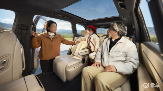 市面上很多大六座SUV都有个通病,第一排是头等舱,第二排是商务舱,第三排是经济舱。成年人坐进第三排,膝盖顶前排椅背、头顶擦车顶,坐姿像蹲小板凳。这种“伪三排”对于偶尔应急还行,但对于经常带父母孩子出门的家庭来说,体验确实差了点意思。华境S车身尺寸5235mm,轴距3.05mm,5.2的全尺寸体格给车内空间打好了基础,第三排坐垫深度做到了473mm且加厚60mm,靠背支持125°电动调节,侧窗面积同级最大,成年人坐进去大腿有承托、坐姿能舒展、视野不压抑。第二排和第三排之间190mm的过道宽度加上纯平地板,老人进出不用侧身。每个座位都有体面的乘坐体验,这才是大六座SUV该有的样子。